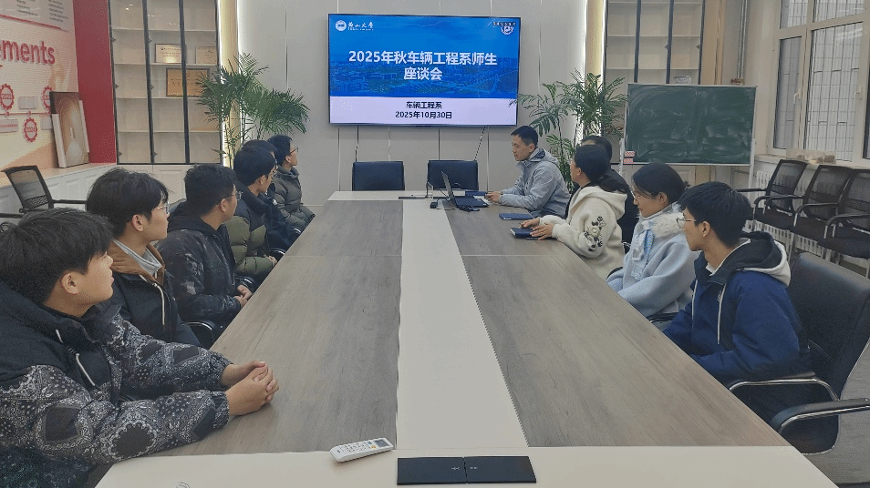 2025年10月30日,车辆工程系在车辆馆112举行2025年秋季学期师生座谈会。车辆系副主任王建涛、贾拓和毕业年级辅导员杨春婧及9名学生代表围坐一堂,围绕“就业/升学心理准备好了吗”和“毕业设计有规划吗”两大话题展开热烈交流。
